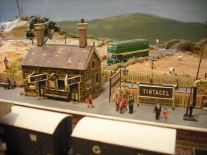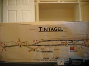 Tintagel was chosen as the location because of a holiday at the time and because it never had a station, giving a free reign to the design. It is meant to be a GWR station in origin, but now in the Western Region of BR.